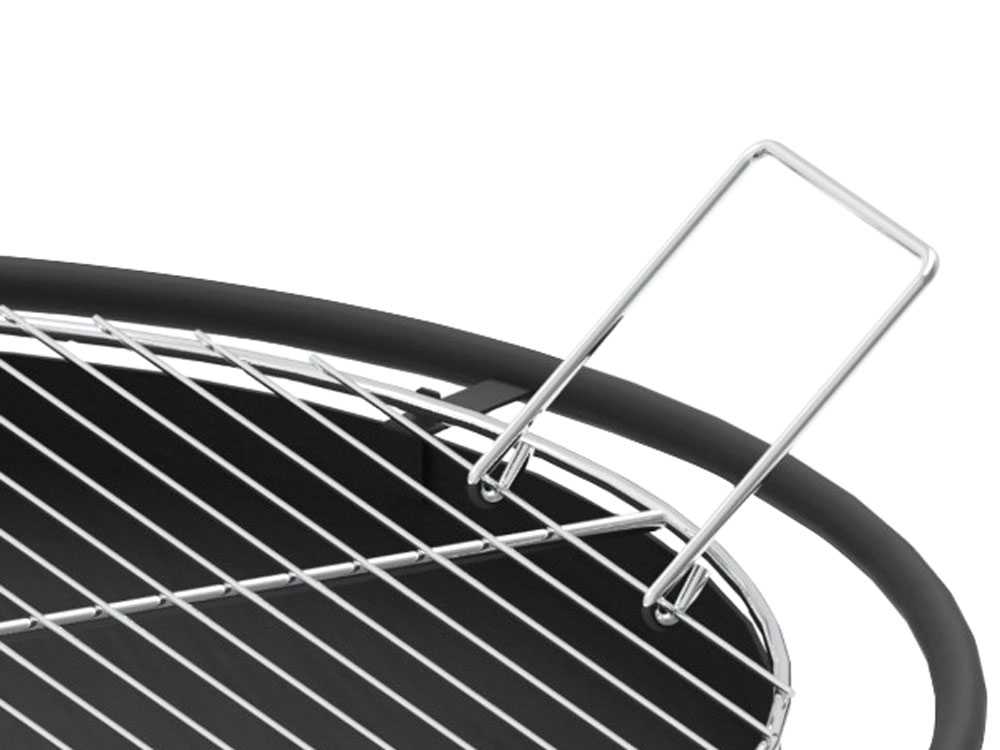 La sua griglia cromata per la cottura ha un ampio diametro di 60 cm ed è munita di maniglia laterale, utili per facilitarne la rimozione o il posizionamento.