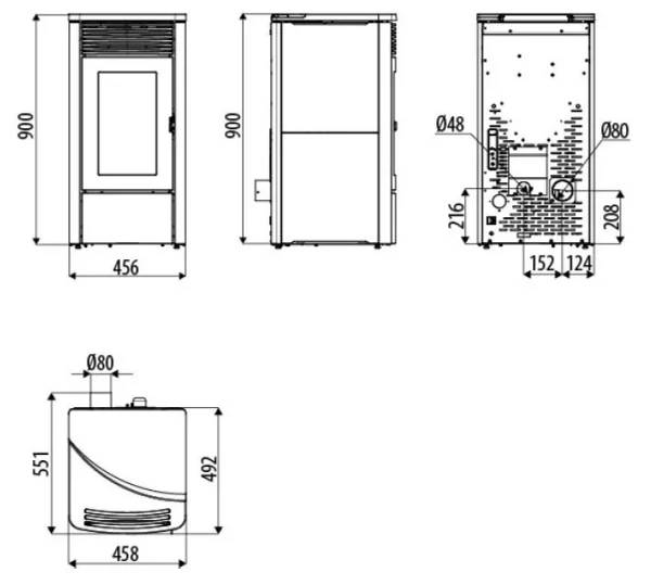 • Diametro uscita fumi 80 mm